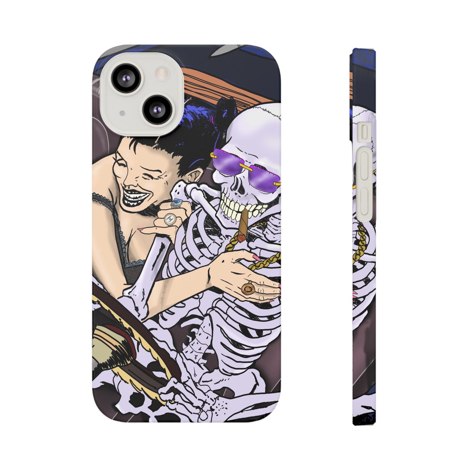 Edgy Slim Phone Case - Gothic Skeleton Design, Alternative Fashion Accessory, Unique Gift for Halloween, Birthday, Novelty Item